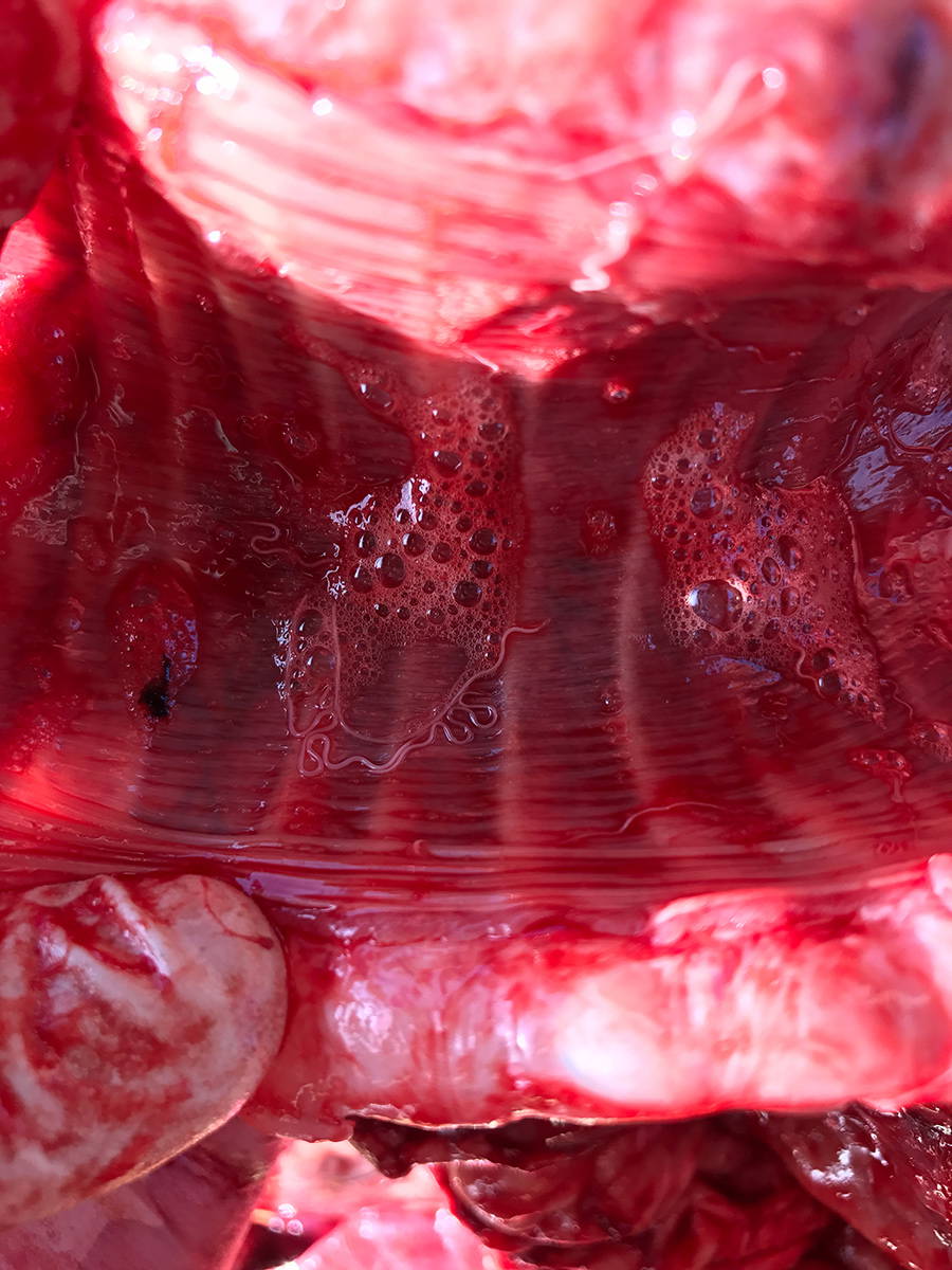 A presumptive diagnosis can also be reached based on farm history, clinical signs being shown and response to treatment. Lungworm larvae can also be found in the airways of dead animals.